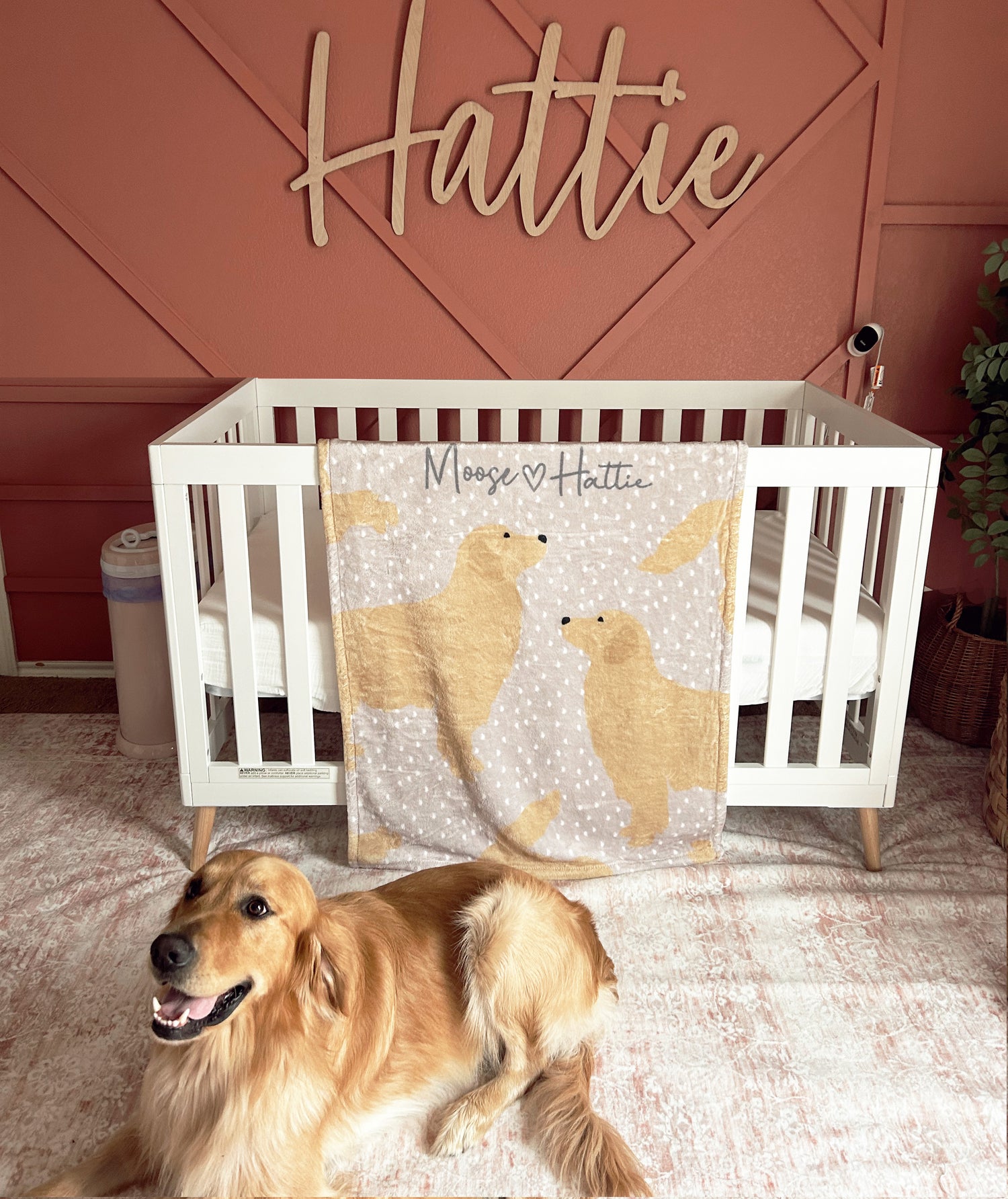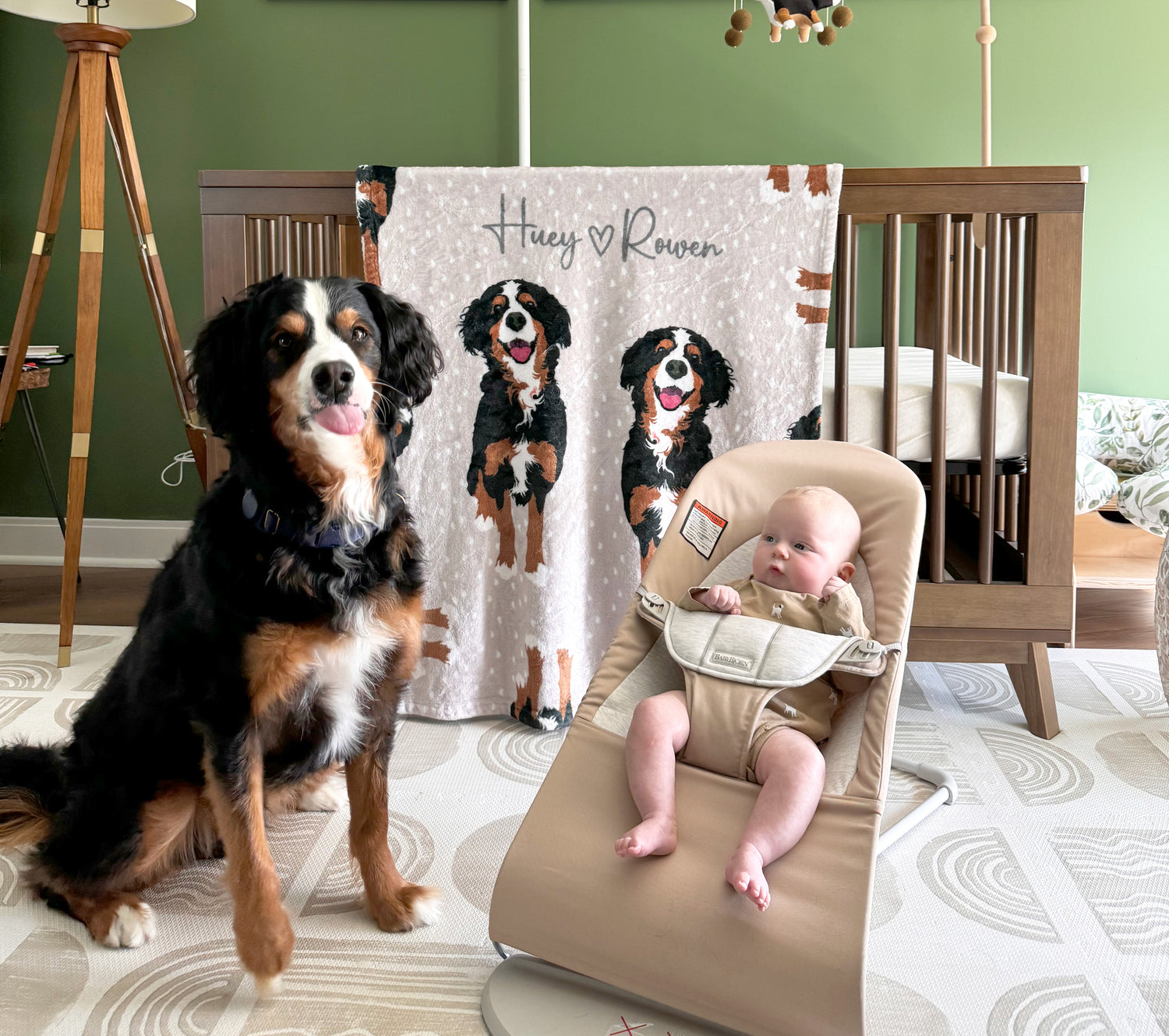 Create your keepsake dog baby blanket that includes your dog from day one.